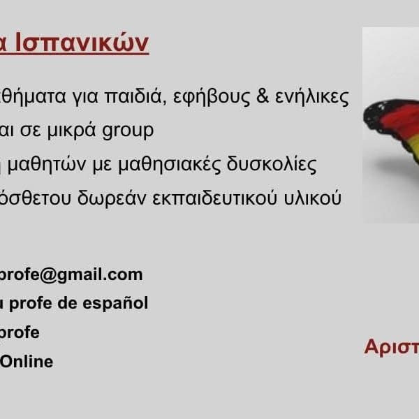 *Ιδιαίτερα μαθήματα ισπανικών για παιδιά, εφήβους και ενήλικες *Ατομικά ή/και σε μικρά group *Υποστήριξη μαθητών με μαθησιακές δυσκολίες *Παροχή πρόσθετου δωρεάν εκπαιδευτικού υλικού